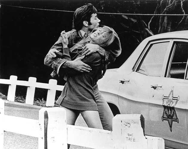 The Jane Fonda comparisons also likely caught the attention of director Roger Vadim – then Fonda’s husband – who cast Bang as one of the lithesome girls of Oceanfront High School in Pretty Maids All in a Row (1971), which was produced and co-written by a post-Star Trek Gene Roddenberry. Vadim’s libidinal fantasy murder-comedy gives new meaning to the word bodycount; Rock Hudson is the mustachioed school guidance counsellor who, despite being married to the gorgeous Barbara Leigh (of The Student Nurses), makes it with all the female students, including thumb-sucking cheerleader Joy Bang. He encourages new teacher Miss Smith (Angie Dickinson) to follow suit, urging her to help virginal student Ponce de Leon Harper (John David Carson, son of western actor Kit Carson) overcome his “impotency problem”. When the female students start turning up dead, it appears there’s a serial killer on campus, and before long, Bang is found dead in the football field, with a note saying “poor, poor honey!” taped to her rear end and a smile across her face.