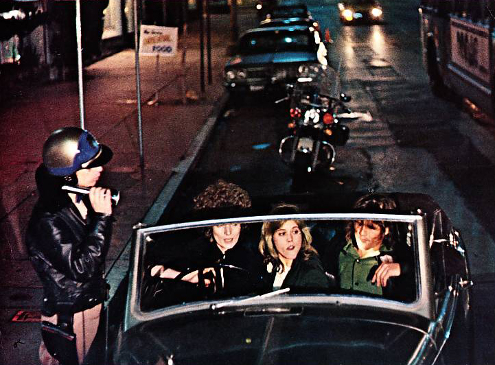 Joy Bang plays Lynn, groupie and gal-pal to a visibly pregnant Viva who wants to score off Cisco. Piled into the front seat of a car and loaded down with drugs, the trio have a hilarious run-in with a traffic cop before speeding off for a ménage-a-trois at Viva’s apartment. The duo pop up again later in the film, with Joy getting busy with Cisco’s world-weary (and apparently impotent) musical partner Harry Dean Stanton in the back seat of a car. She later finds him OD’d on smack in the bathroom.