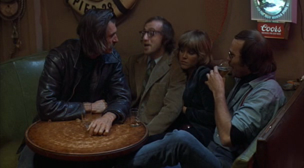 While these roles seem ornamental to a certain extent, the most dismissive might be her turn as Julie in Woody Allen’s Play it Again, Sam (1972). Directed by future Footloose director Herbert Ross from Allen’s stage play (a poster for which appears in Cisco Pike), Allen plays Allan Felix, a classic Hollywood-obsessed film reviewer whose wife splits, leaving him to have imaginary conversations with guardian angel Humphrey Bogart. Heeding shadow-Bogey’s advice that “There’s plenty of dames in the world, all you have to do is whistle,” Allan tries to bury his feelings of dejection with some carnal experiments of his own. Of course, he strikes out at every turn (even Viva, who plays an admitted nymphomaniac, spurns him). With his smug pal Tony Roberts as a go-between, he manages to swing a date with Julie (Joy Bang). “Let’s go in there and get stoned and watch the freaks!” she says to Allan, convincing him to go into a dive bar where they are promptly set upon by greasy bikers who beat up Allan and abduct Julie. Sadly this is one of few lines she gets in the film, treated as she is like just one in a catalogue of women Allan ceases to impress.